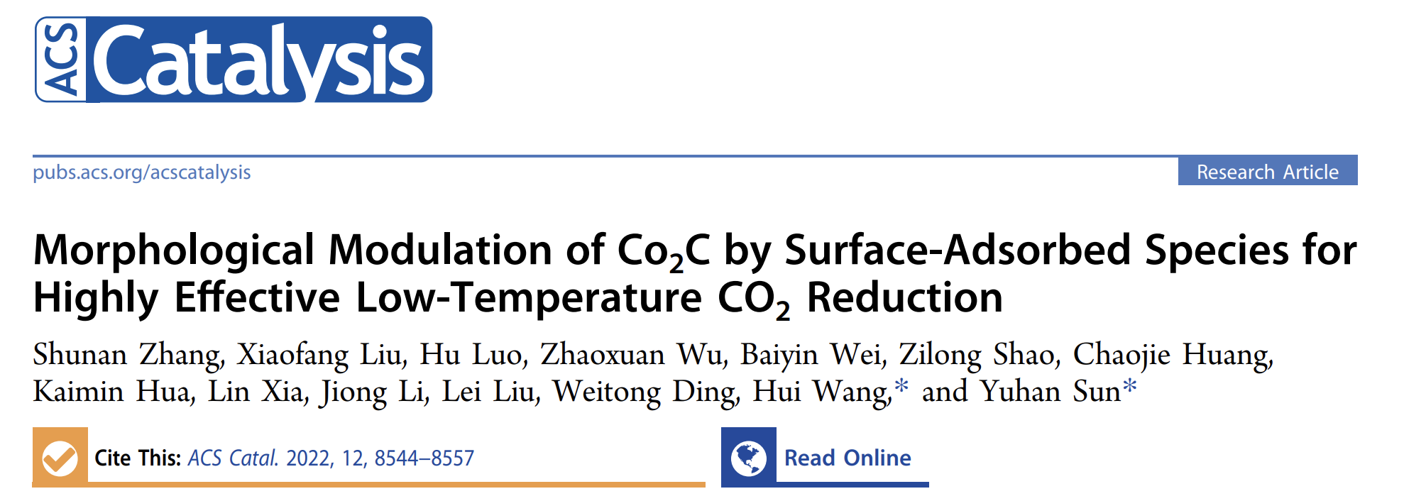近期,上海高等研究院低碳转化科学与工程重点实验室王慧研究员、孙予罕研究员团队在二氧化碳加氢低温高效催化剂构筑方面取得新进展。研究成果以“Morphological Modulation of Co2C by Surface-Adsorbed Species for Highly Effective Low-Temperature CO2 Reduction”为题在线发表于美国化学会旗下ACS catalysis(2022,12,8544-8557)上。
