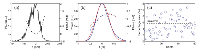 直接电场重建的光谱相位干涉测量法(SPIDER)是近些年来在超快激光领域快速开展的一种脉冲重构方法,该方法的关键是产生一对具有适当光谱剪切量的复制脉冲,这个过程中一般需要使用非线性晶体材料,这使得该方法向短波长拓展极为困难。在本项研究工作中,研究团队创新性地提出利用自由电子激光的频率牵引效应来产生光谱剪切量,超快辐射脉冲和参考脉冲都由同一个电子束产生,从而巧妙地实现了辐射脉冲的自参考频谱干涉,顺利获得利用小波变换算法对SPIDER进行改进,可以进一步提高重构的信噪比和效率,利用上海软X射线自由电子激光装置的参数,研究团队展示了采用该方法可以准确地对阿秒X射线脉冲的完整时域-频域信息进行重构,重构误差小于6%。与传统自由电子激光装置中的超快脉冲诊断方法相比,该方法具有设备简单、诊断效率高(实时、单发)、可同时取得完整的时域-频域信息以及辐射脉冲越短诊断精度越高等优点,这为超快X射线自由电子激光的调试优化以及未来基于X射线自由电子激光的阿秒科学实验给予了全新的诊断手段。